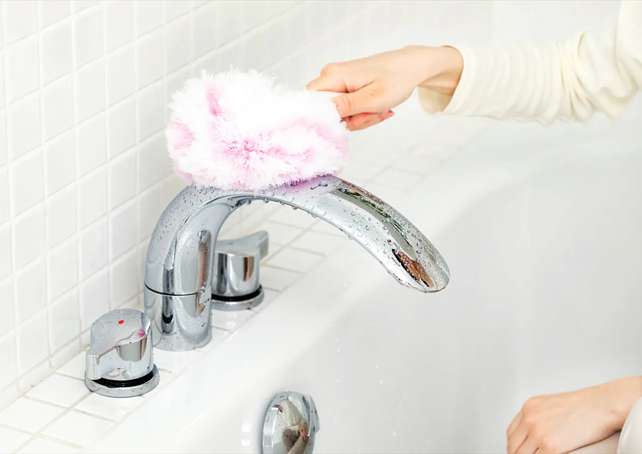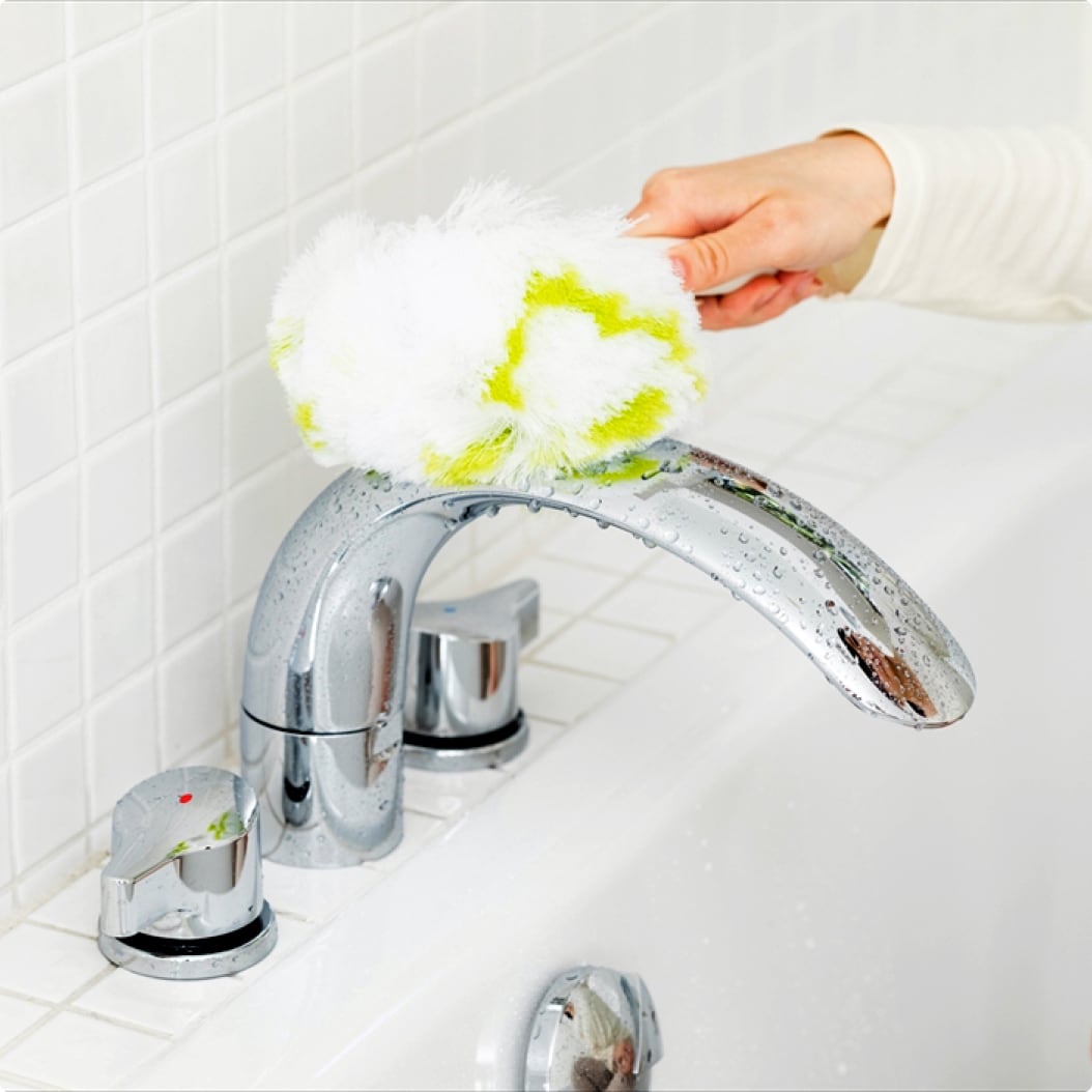 洗剤をつけなくても、ふさふさの毛で汚れやヌメリをすっきり落とせる! 家族みんなが安心して使えます。